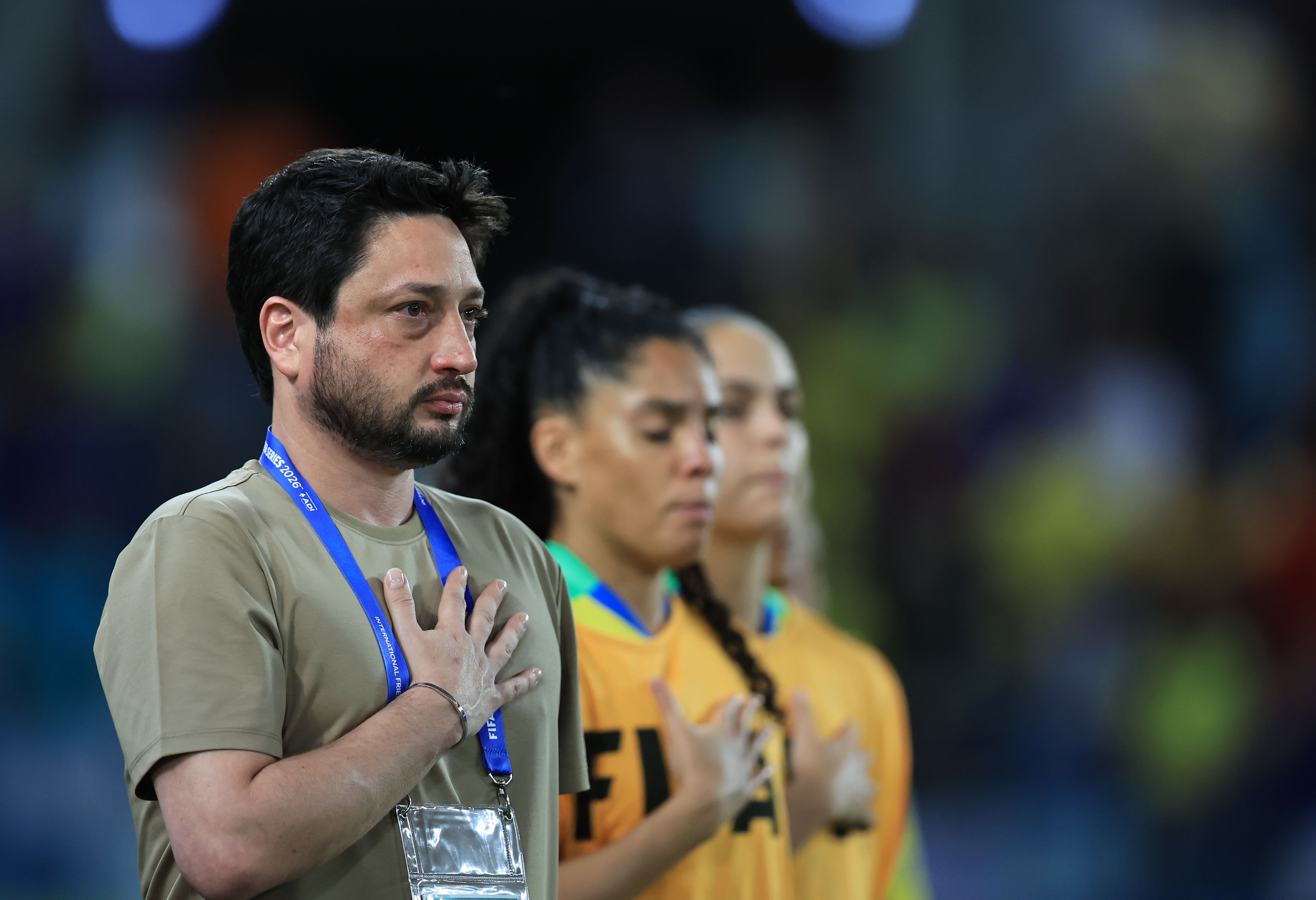 Arthur Elias durante hino nacionalCréditos: Lívia Villas Boas/CBF