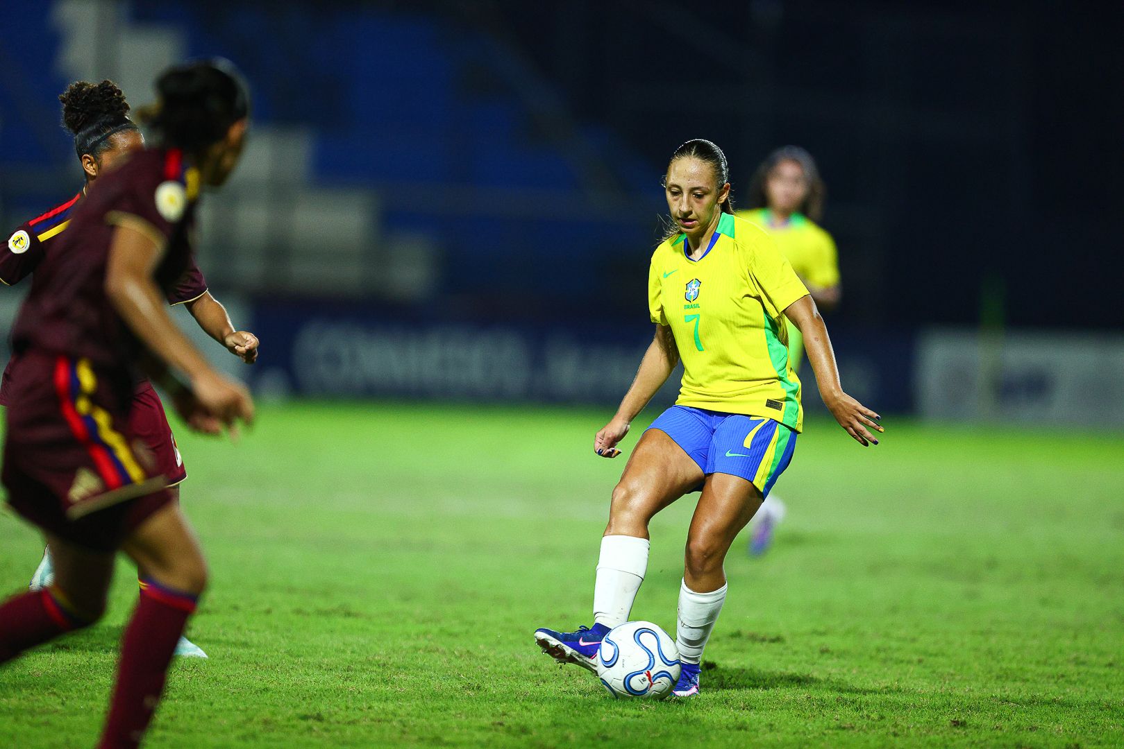 A Seleção Brasileira garantiu seus primeiros três pontos no Sul-Americano Feminino Sub-17 ao derrotar a Venezuela por 2 a 0 em sua estreia na competição. Autoras dos gols do Brasil, Gigi e Mari Gigante celebraram o feito.